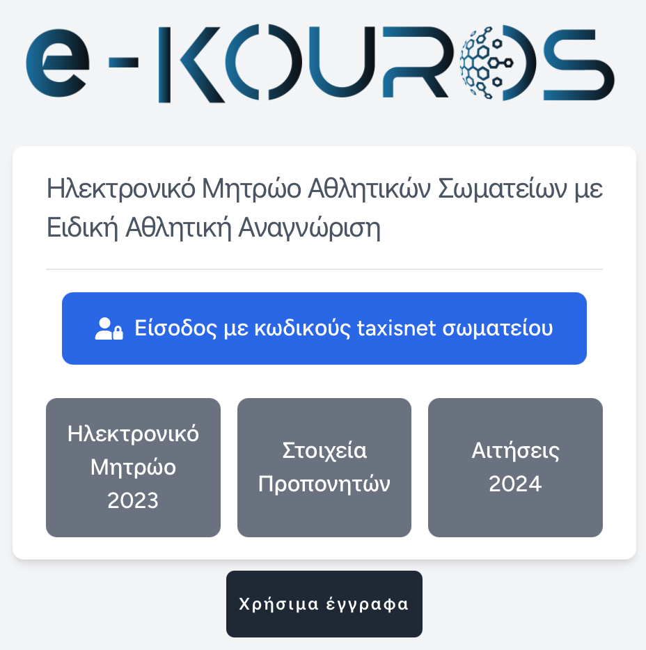 Έως τις 19 Σεπτεμβρίου η υποβολή της ηλεκτρονικής αίτησης στο «e-Kouros» για την εγγραφή των ερασιτεχνικών σωματείων στο Μητρώο 2025